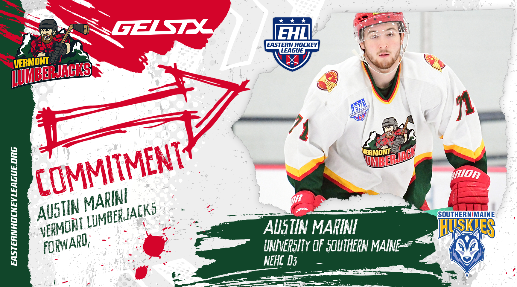 "Austin has been an integral part of our team's achievements so far this year,” said EHL head coach and general manager Jim Mosso. “He came to our program with a great attitude and bought into the Lumberjack culture. He has learned how to be an effective player in all 3 zones and he puts our team in position to win. I think Southern Maine is the perfect fit for him and I wish him the best."