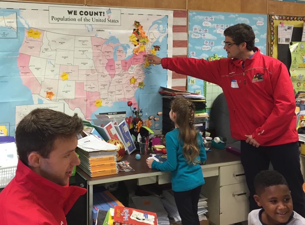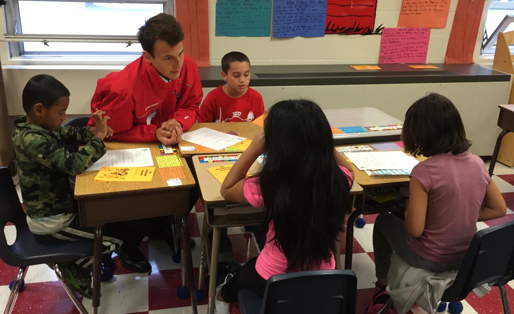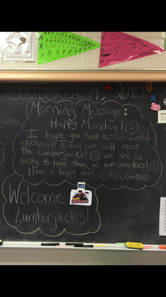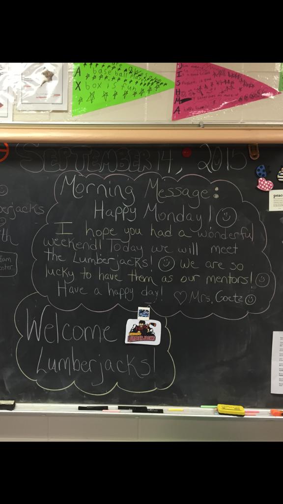 After the presentation the players split into small groups to work with the third graders. The students wrote and discussed their own goals and dreams with the Lumberjacks. "The children are so excited to have the Lumberjacks as their mentors this year," commented JFK teacher, Lisa Goetz.