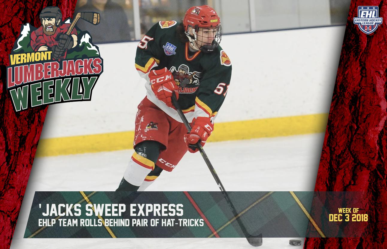 The EHLP squad welcomed the Walpole Express to town this past weekend for a pair of matchups. The Lumberjacks took care of business in the previous two battles against their division opponent, beating them by a combined score of 6-3. Saturday’s game got off to a similar start as Ben Rouillard gave the Lumberjacks the early lead just 6 minutes into the 1st period. The Express would even things up on the power-play later on in the frame, but Rouillard found the back of the net yet again, this time 6 minutes into the 2nd frame to give the boys a 2-1 advantage. The Express answered back with a pair of goals of their own to take a quick 3-2 lead. However, Jacob Dillion and Connor Black both scored short-handed goals in the final minute of the frame to take back the lead.