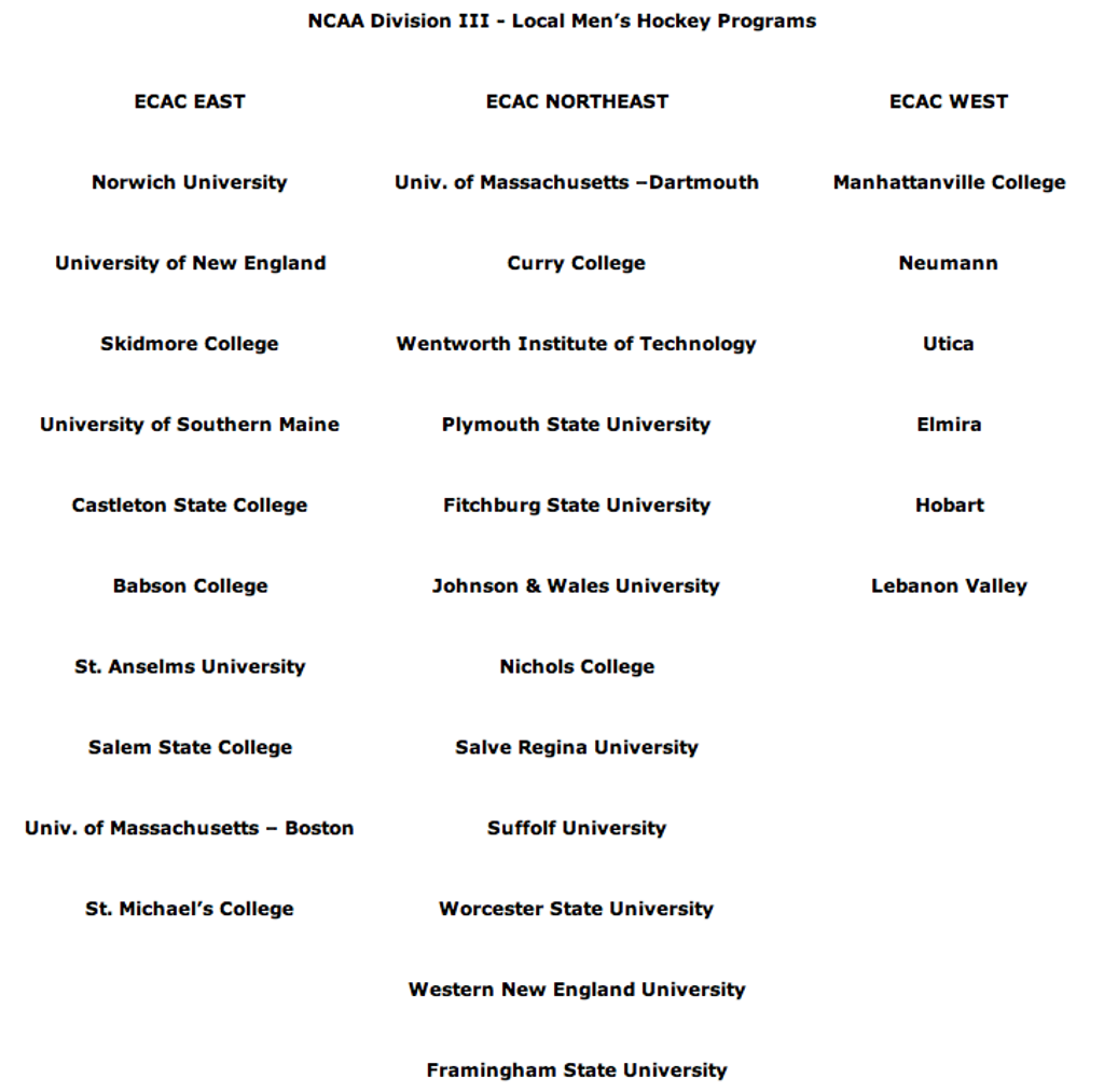 NCAA Division I - Local Men’s Hockey Programs